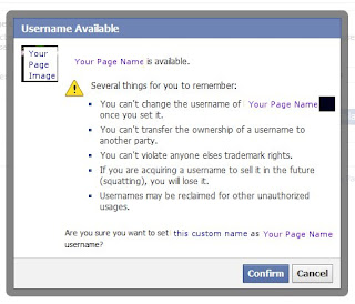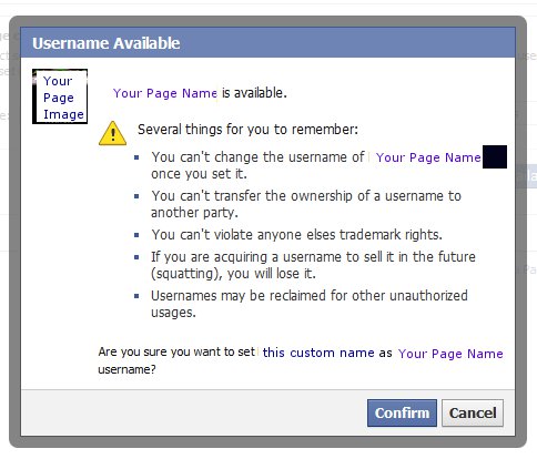 If you have not yet met the requirement of 25 fans, you will see a message that your page is not eligible for a username at this time. Gain your 25 fans and return.